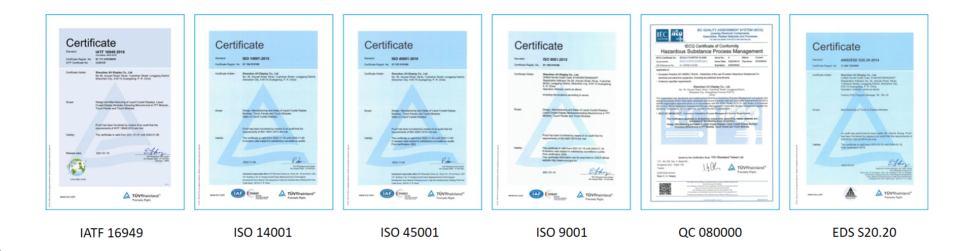 | 深圳工廠 | IATF16949-2016證書(shū) |